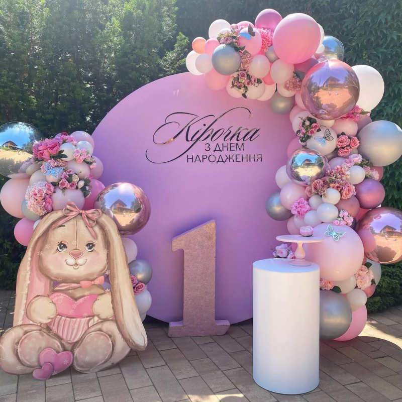 Кругла фотозона із зайчиком рожевий Для заказа напишите в Viber или Telegram или оставьте заявку: Для звонков (только в рабочее время): +38 (050) 529 99 50 +38 (099) 114 72 22 Зайчик